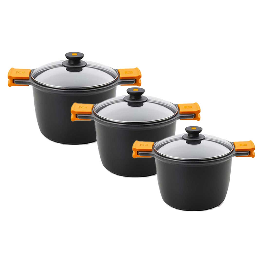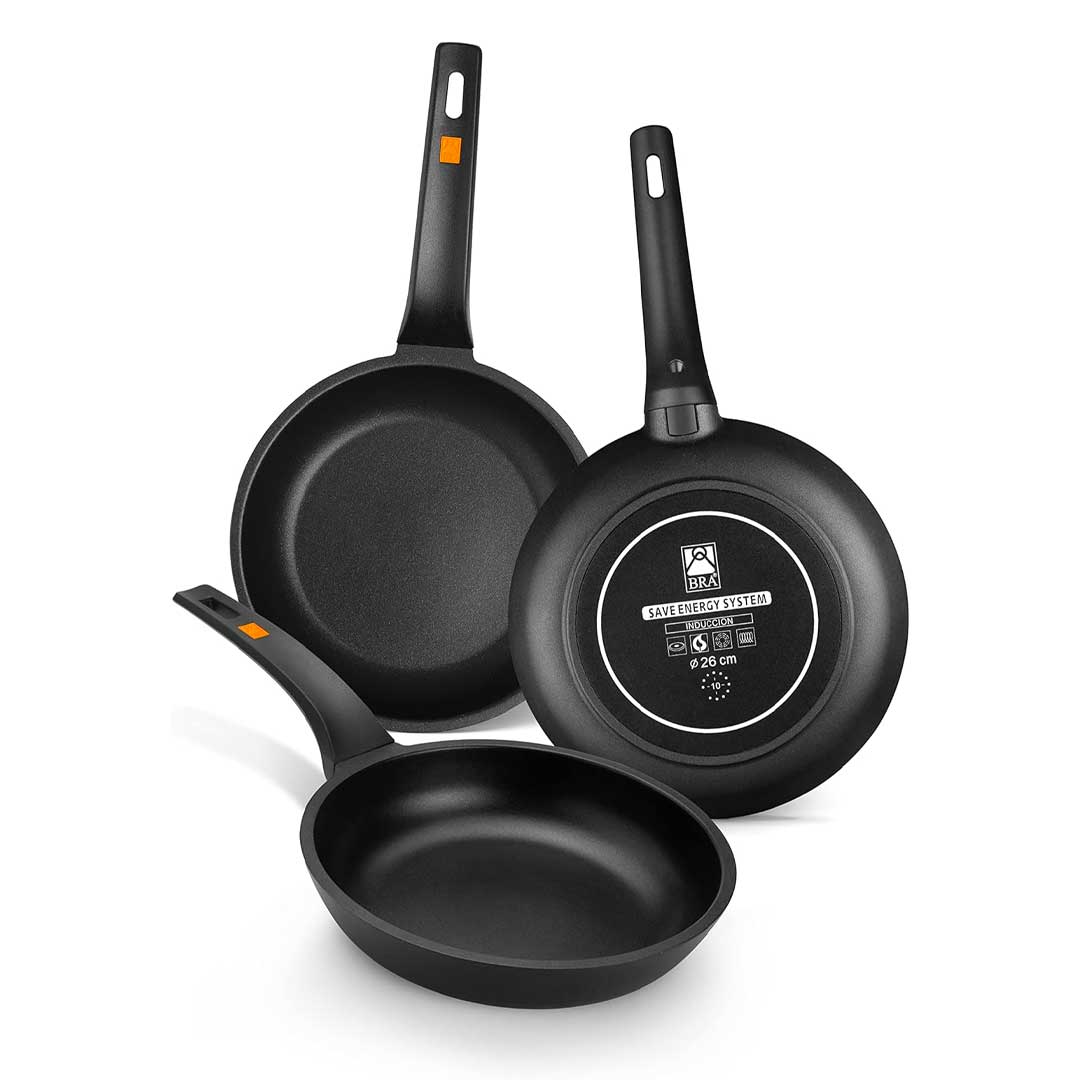 This BRA Efficient NEW 10-piece pot set is made of high-quality die-cast aluminum, featuring a special non-stick coating and a sturdy handle to ensure maximum safety.