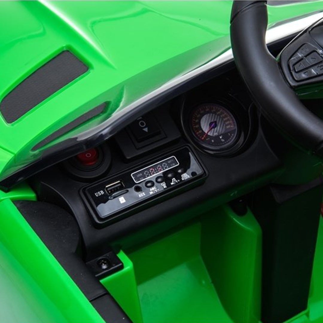 What enriches this incredible model is the presence of many optional features : the leather seat, rubber wheels for greater grip, LED lights and realistic sounds, MP3, two 45W motors and reverse gear.