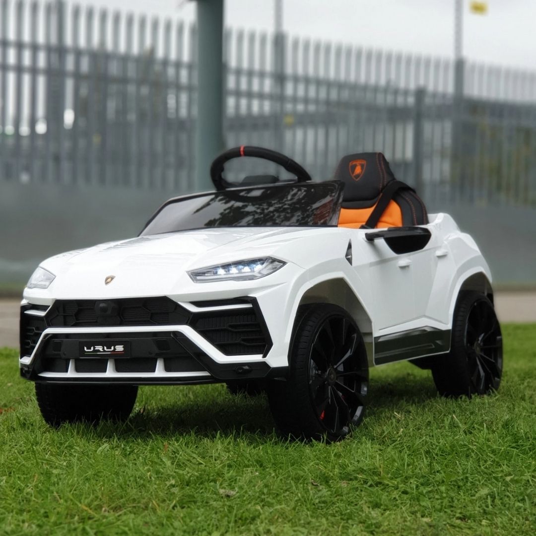 Beautiful Lamborghini Urus electric car for children of the highest quality equipped with 2 motors with forward and reverse gear. Maximum safety as it is complete with remote control for parental control by parents, the car full of options also features an Mp3 player with stereo speaker, LED lights, a USB input to let your children listen to the music they most ' by hand.