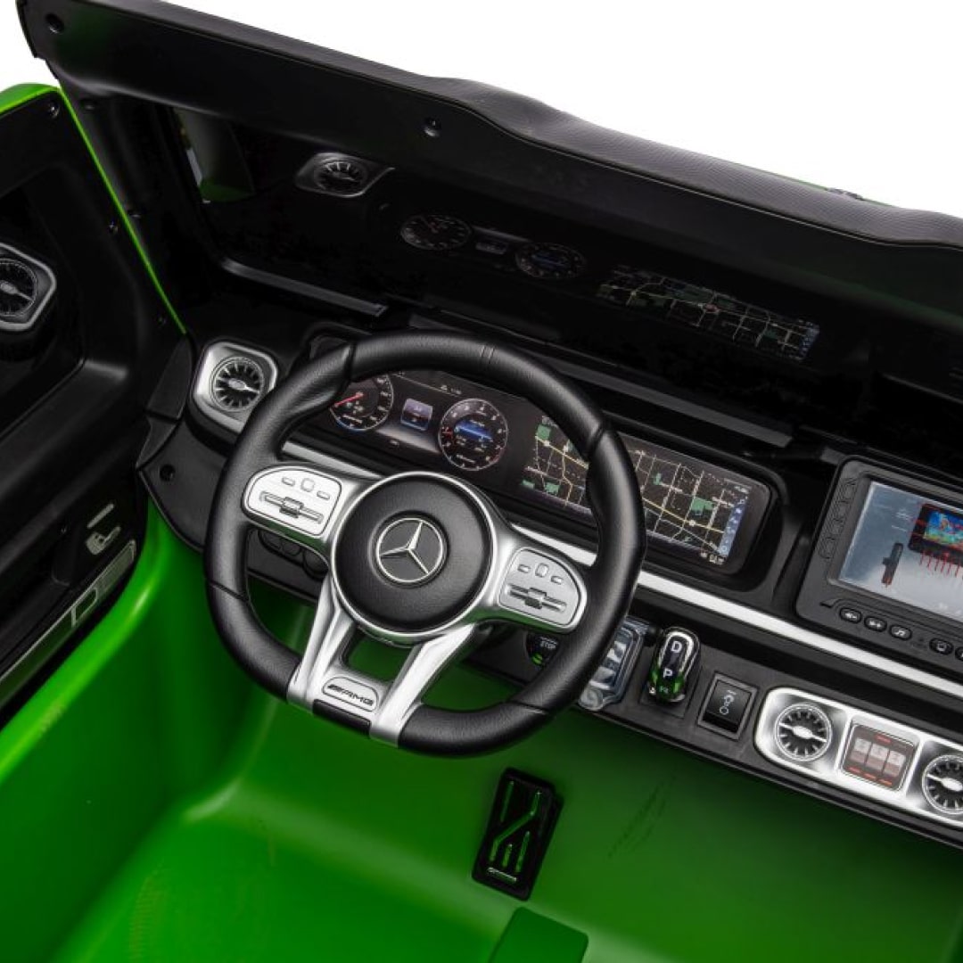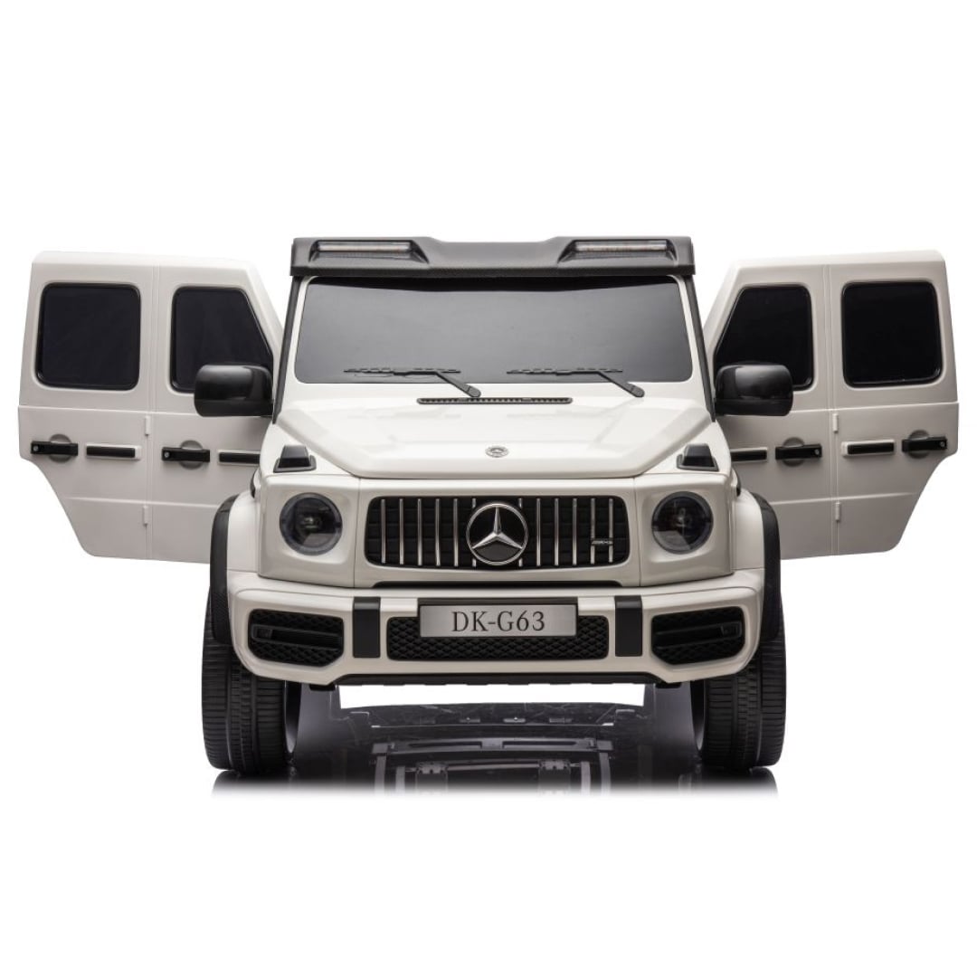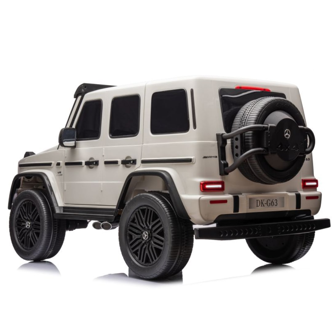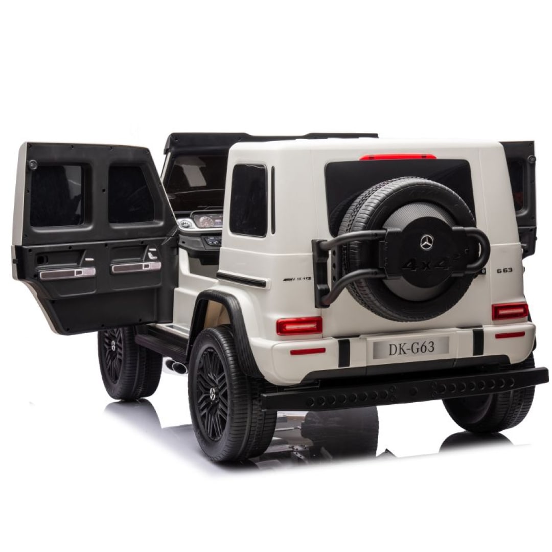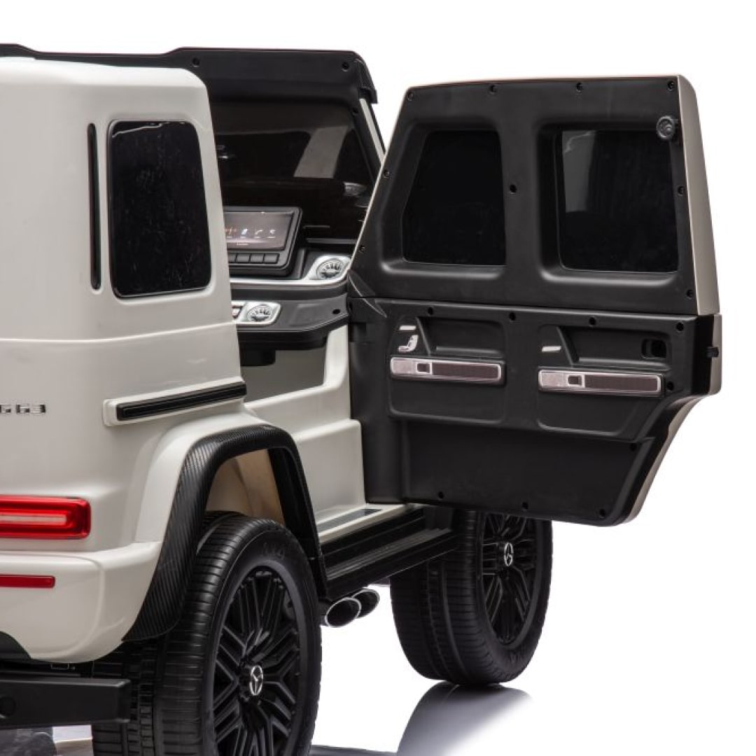 La Mercedes G63 XXL combina un design iconico con funzionalità avanzate: motori potenti da 4x200W, batteria 48V per lunghe sessioni di gioco, ruote in EVA e sedili in ecopelle per un comfort senza pari. Con fari anteriori e posteriori, schermo MP4 e telecomando parentale, offre sicurezza e divertimento per tutta la famiglia.