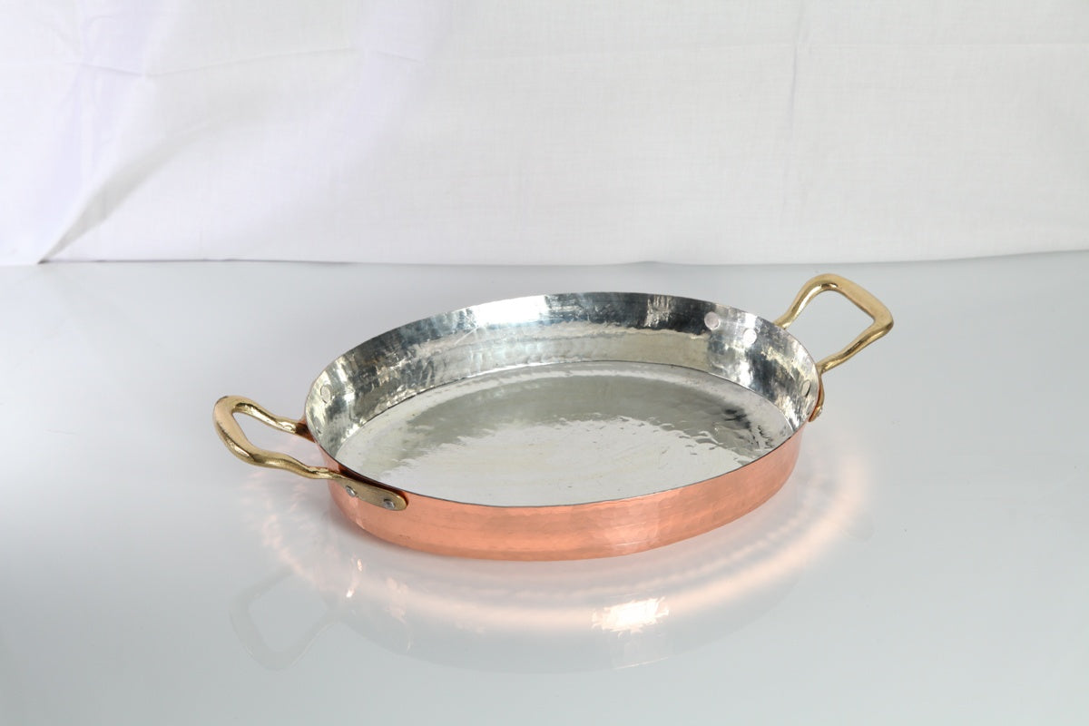 SARTÉN DE COBRE OVALADA ACAMPANADA con 2 ASAS cm.22x17x5h (totalmente hecha a mano)