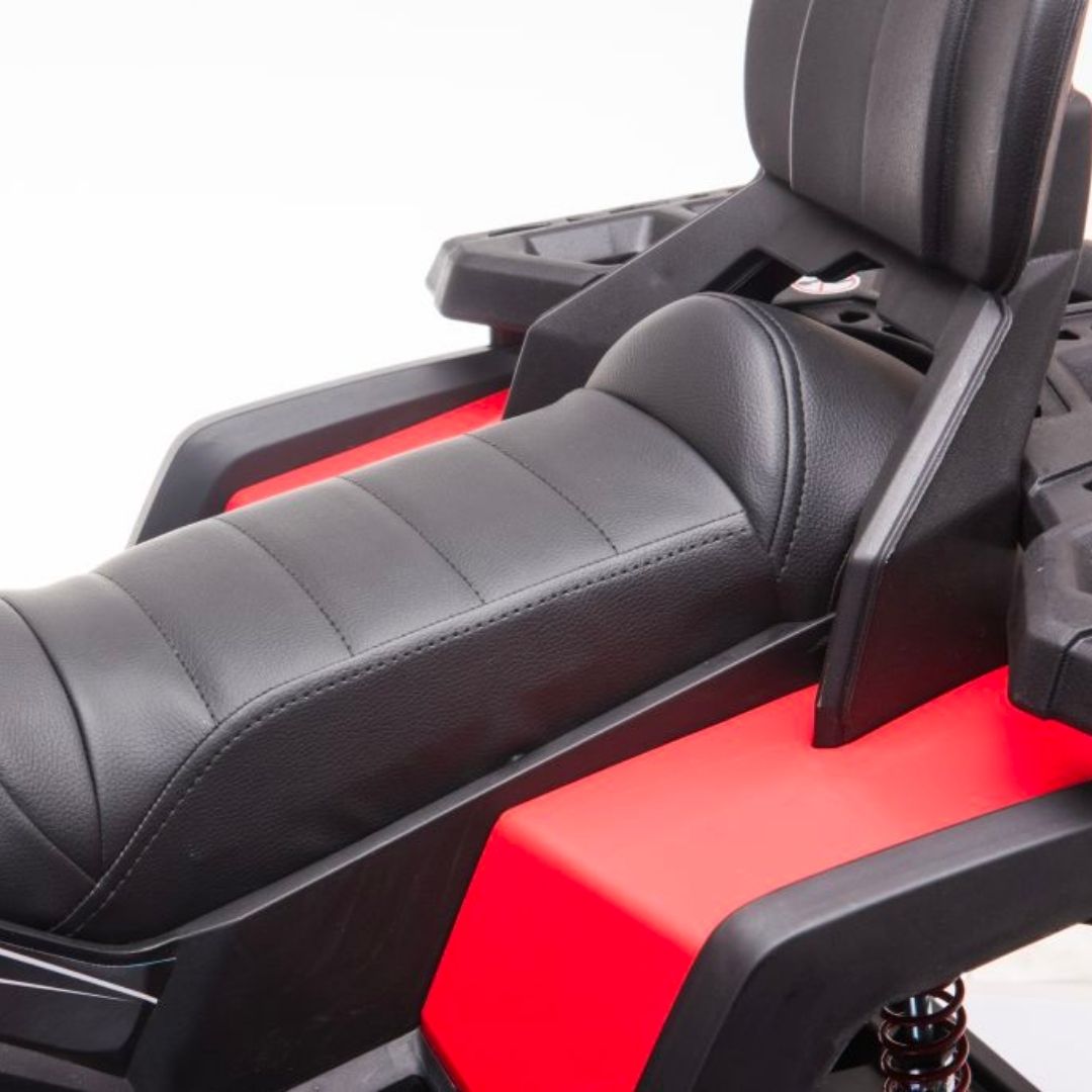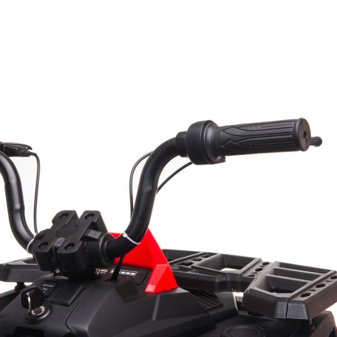 Potente y divertido, este quad eléctrico para niños tiene una velocidad máxima de 16 km/h y está equipado con 2 motores de 200 W cada uno.