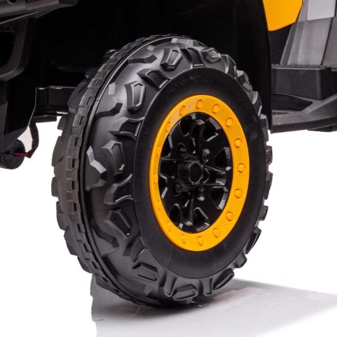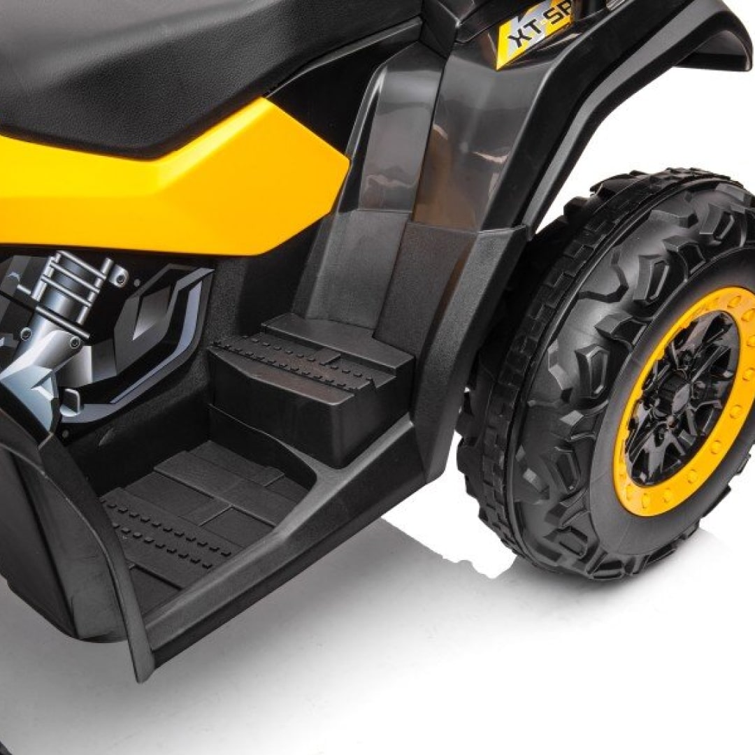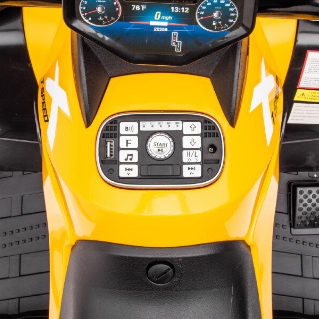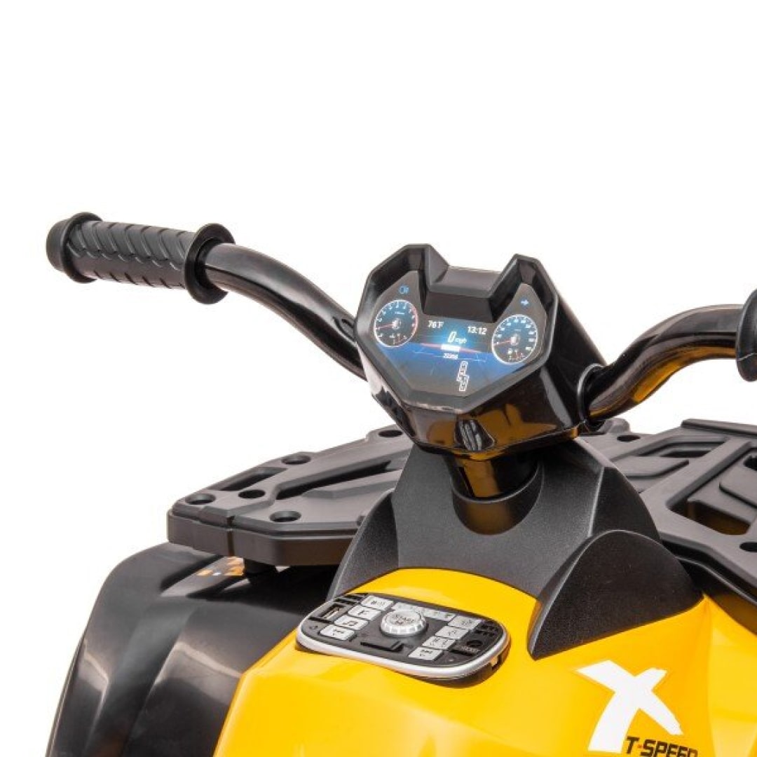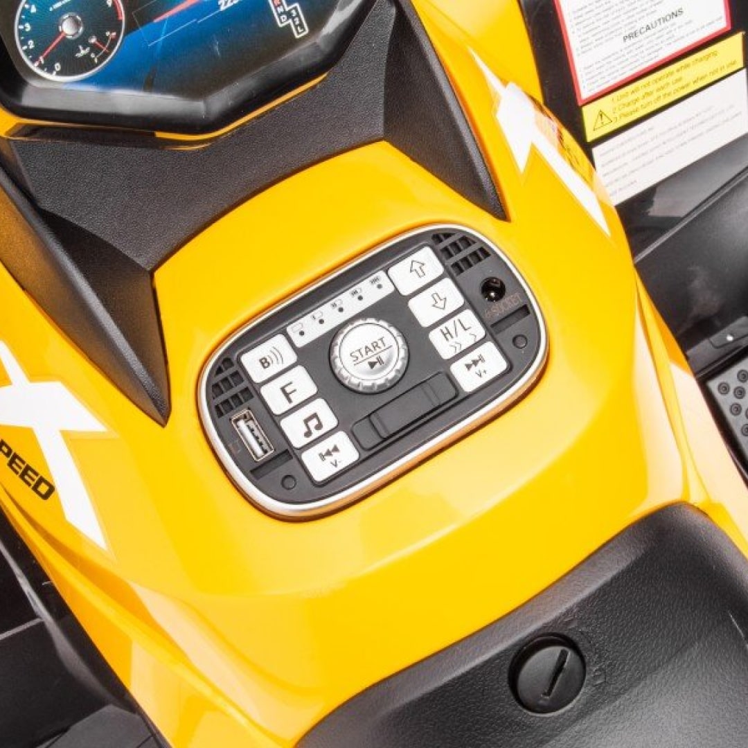Un quad elettrico sicuro e performante con 4 motori da 80W, batteria 24V7Ah, ruote in EVA per un’aderenza ottimale e luci anteriori. Con velocità regolabile fino a 8 km/h e dettagli come il sedile in ecopelle morbida e il pannello musicale con Bluetooth e USB, offre un mix perfetto di divertimento e comfort.